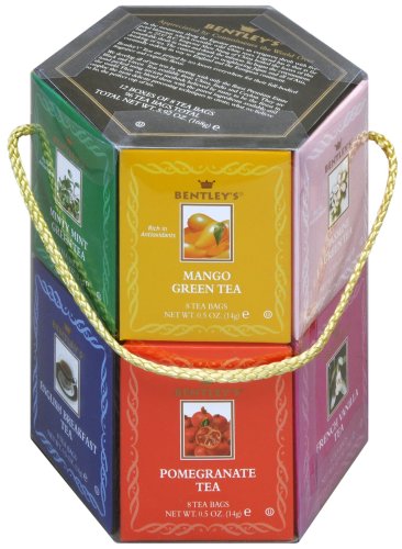 Bentley's Assorted 96ct Classic Tea Collection. Each sampler box within the assortment is packed with its our unique holiday flavor of tea. Bentley's Teas are prized by tea lovers everywhere for their full-bodied fragrance and exquist flavor. We develop all of our prized teas by starting with only the finest teas from either China, India or Sri Lanka. We then blend each tea with only the purest ingredients available along with the most delicate of processing techniques to creat what we believe to be the perfect cup of tea. Bentley's - Appreciated by Connoisseurs The World Over.